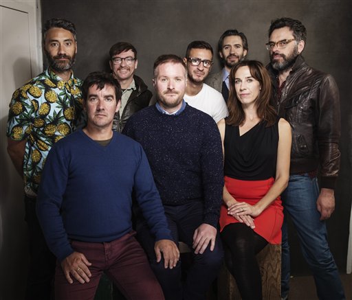 From left, Taika Waititi, Jonathan Brugh, Rhys Darby, Stu Rutherford, Cori Gonzalez-Macuer, Emanuel Michale, Jackie van Beek and Jemaine Clement pose for a portrait at Quaker Good Energy Lodge with GenArt and the Collective, during the Sundance Film Festival, on Monday, Jan. 20, 2014 in Park City, Utah. (Photo by Victoria Will/Invision/AP)